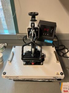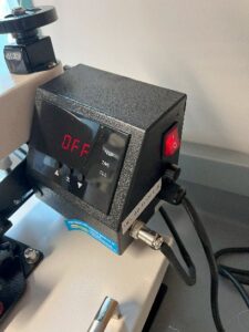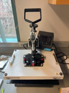 Turn on the T-shirt Press. For this experiment a Signature PRO 12″ x 15″ Swing Away Heat Press with SurePressure manufactured by Heat Press Nation (HPN) was used, however any press with pressure adjustment and Temperature control over 230 °C should work.-