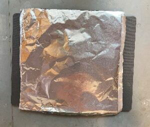 (Optional) The bottom platen in the press used for this experiment was not entirely flat and had a minor bow. This is not an issue for pressing decals on clothing but can be detrimental in making a uniform film. To fill in the bow folded pieces of foil were used.