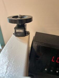 Set the pressure for the film. The exact method of controlling the pressure will vary by unit. In this case a wheel is used to adjust the height of the top platen. The higher the number the closer the platen starts and the higher the pressure will be upon closing. Values between 110 and 130 were used. This will take some trial and error to find out what works without being too difficult to close. Different thickness films and packets will also affect the pressure. Be creative! -